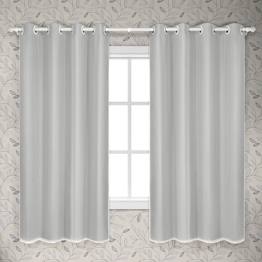 Cortina de voil liso, com forro em corta luz PVC, com ilhós. O corta luz protege a cortina contra o desgaste causado pelos raios solares. Impede a passagem da luminosidade. Impermeável, facilitando a limpeza. Maior durabilidade.