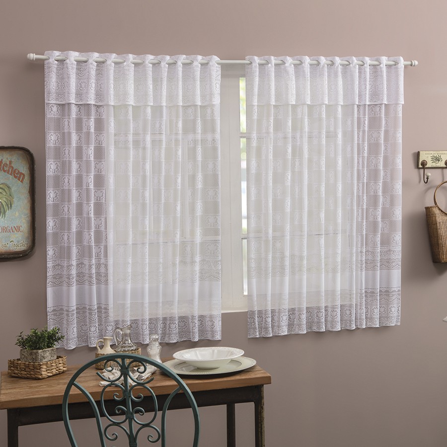 Prática e alegre, a cortina de renda decora a cozinha com muito charme.