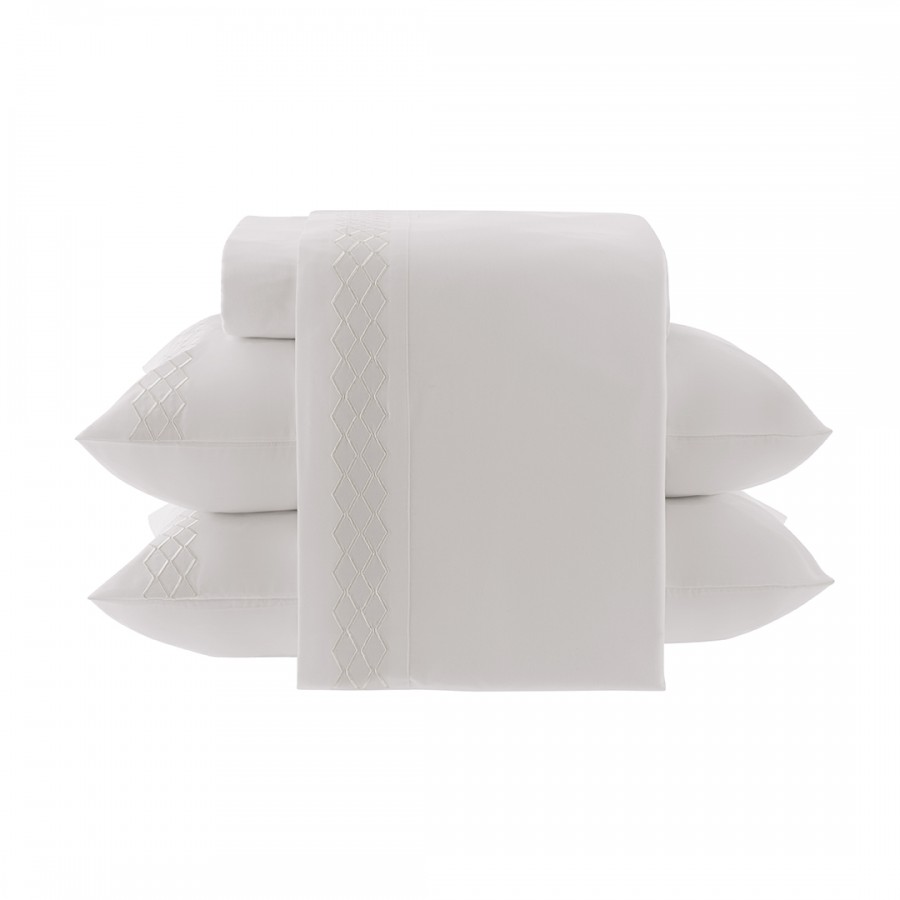 Jogo de Lençol Gretta Queen 04 Peças (01 Lençol com Elástico 1,58m x 1,98m x 38cm, 01 Sobre Lençol 2,40m x 2,50m e 02 Fronhas 50cm x 70cm)
