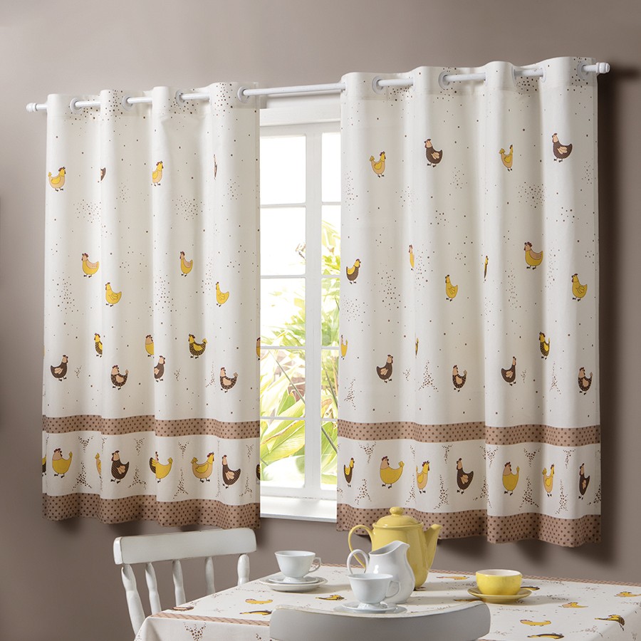 Aparentemente simples, as cortinas para cozinha tem a capacidade de gerar uma sensação de conforto e acolhimento ao ambiente, além de serem muito charmosas. As estampas da Cortina para Cozinha Alegra trazem os mesmos temas de estampas da toalha de mesa Alegra.