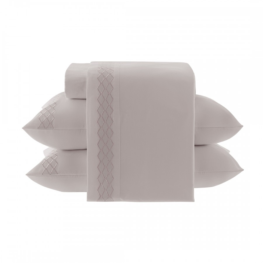 Jogo de Lençol Gretta King 04 Peças (01 Lençol com Elástico 1,93m x 1,98m x 38cm, 01 Sobre Lençol 2,80m x 2,50m e 02 Fronhas 50cm x 70cm)