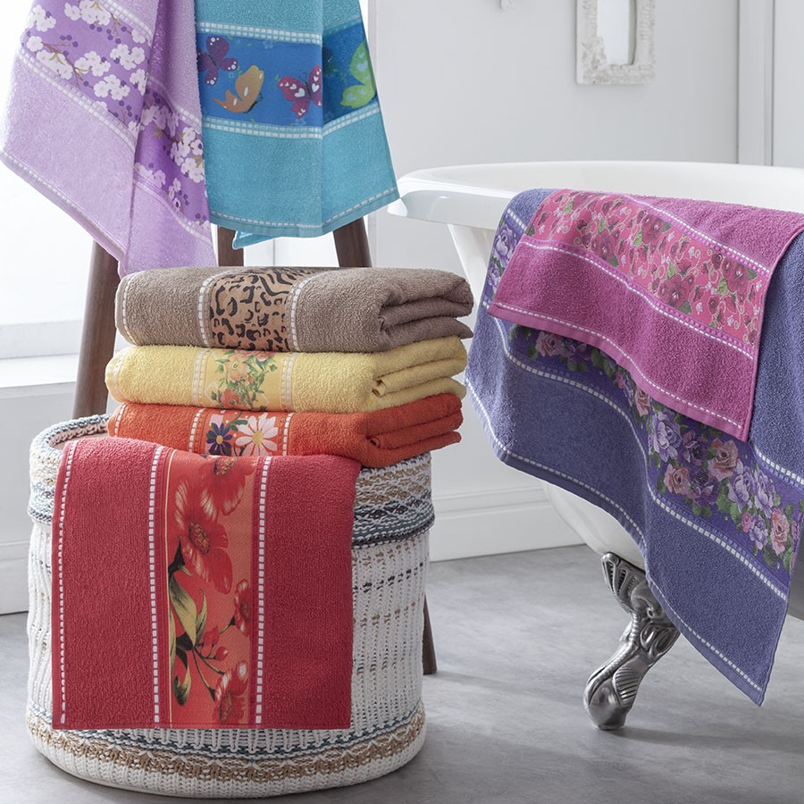 A linha Colors é composta por toalha de banho e rosto. Disponíveis em 8 cores, com estampas em transfer sortidas e localizadas. A linha é toda confeccionada em 100% Algodão, perfeita para o banho, e sua textura felpuda garante a sua capacidade de absorção.