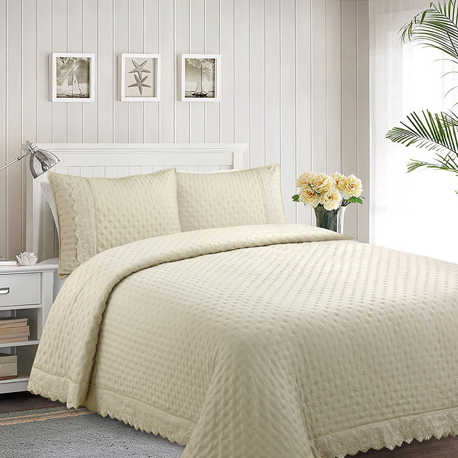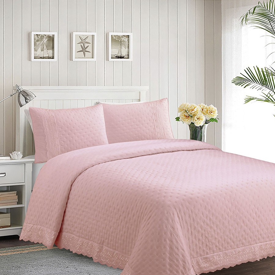 Kit Colcha Bordado Inglês Casal 03 Peças