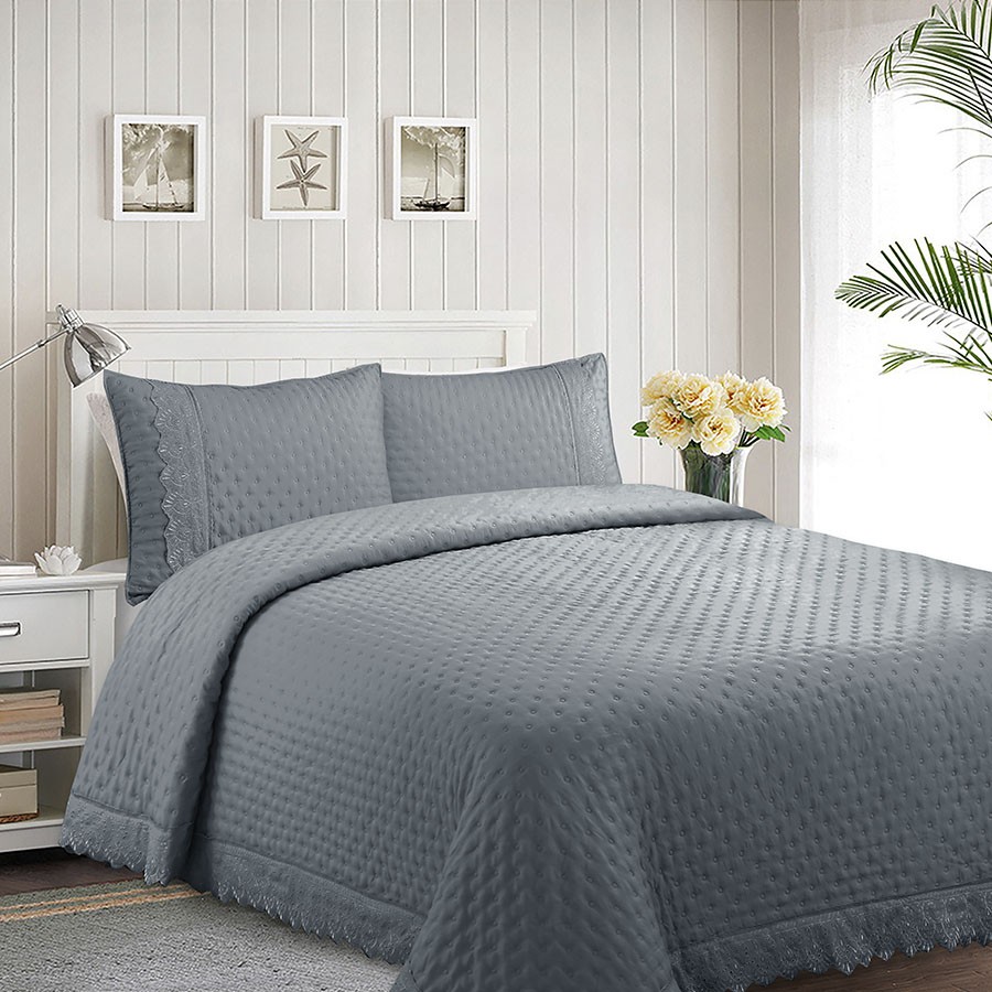 Kit Colcha Bordado Inglês Queen 03 Peças