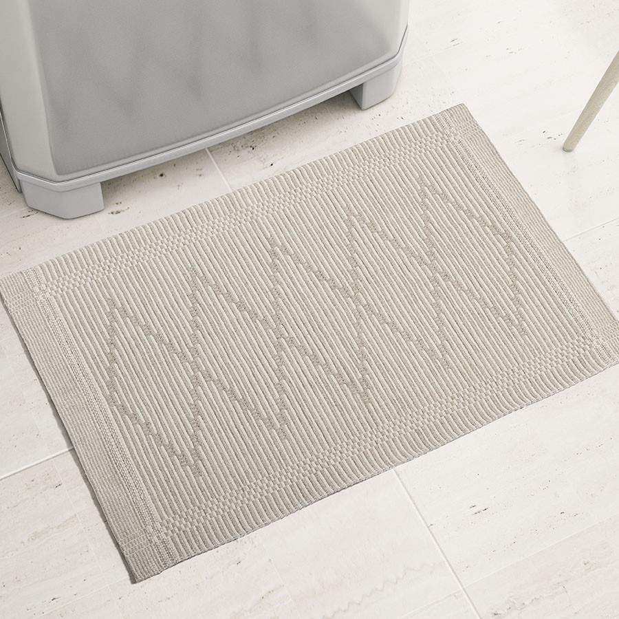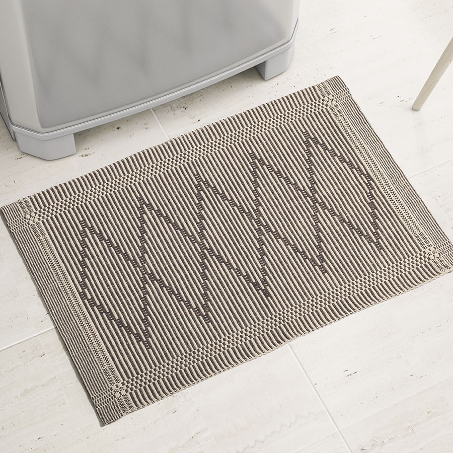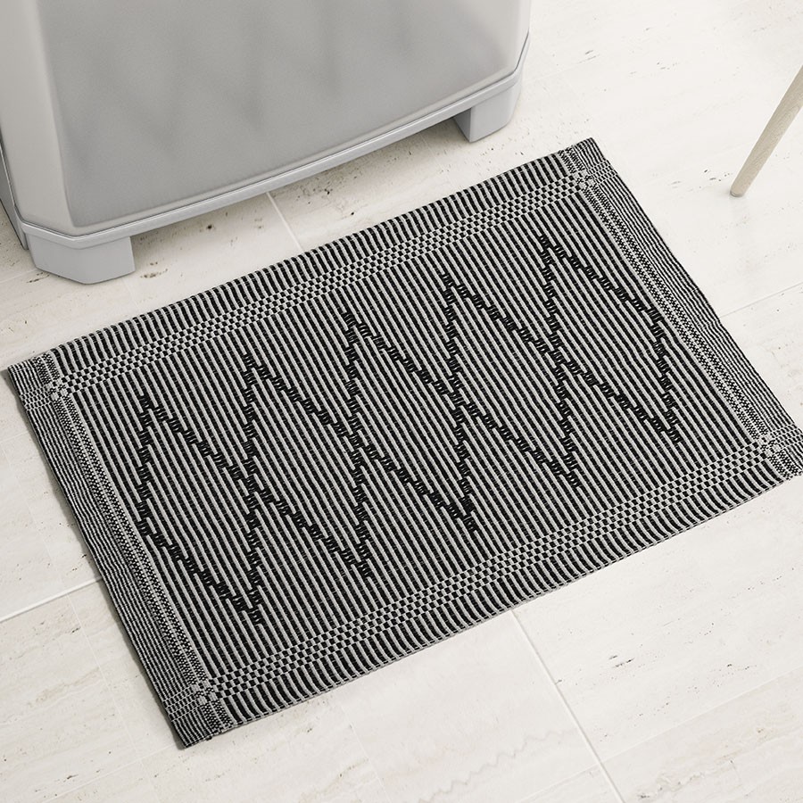 Os tapetes trazem um lindo e moderno desenho geométrico, além de possuir 4 variantes de cores. Feito de algodão ele é prático e fácil de limpar.