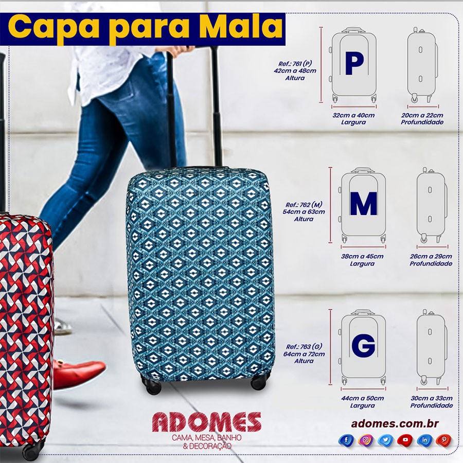 Viaje com mais estilo e proteção! Nossas capas para mala são feitas em malha com elastano, garantindo ajuste perfeito e proteção contra ... Leia mais