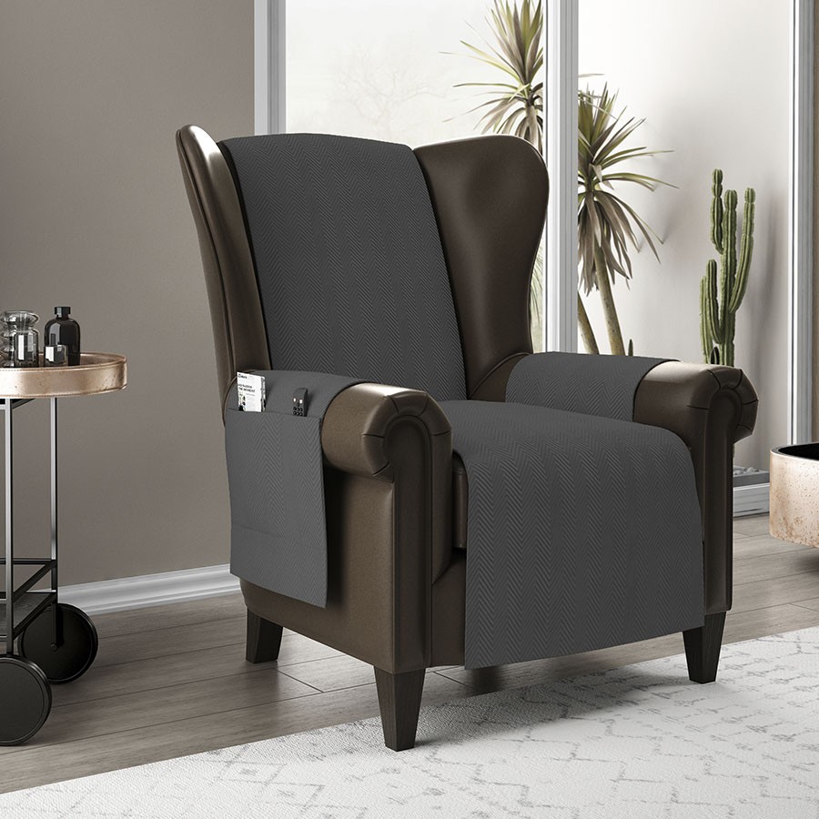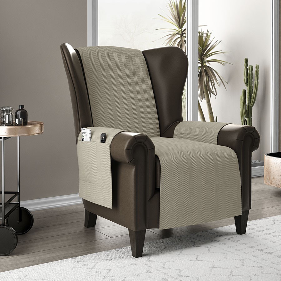 Ideal para proteger sua poltrona. Pratica e fácil de colocar, com bolso utilitário na lateral para controles e revista, e auxilia na limpeza e conservação da poltrona.