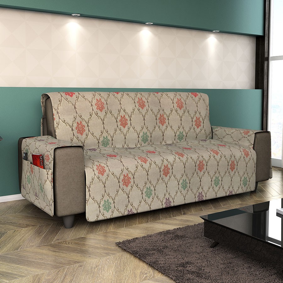 Protetor para sofá confeccionado no tecido jacquard com 3 opções de estampas . As medidas são adequadas e vestem por completo os assentos, com um ótimo acabamento e garantindo a proteção do sofá. Possui bolsos laterais, ideais para armazenamento de revistas e controles remotos. Bom gosto e qualidade para o ambiente.